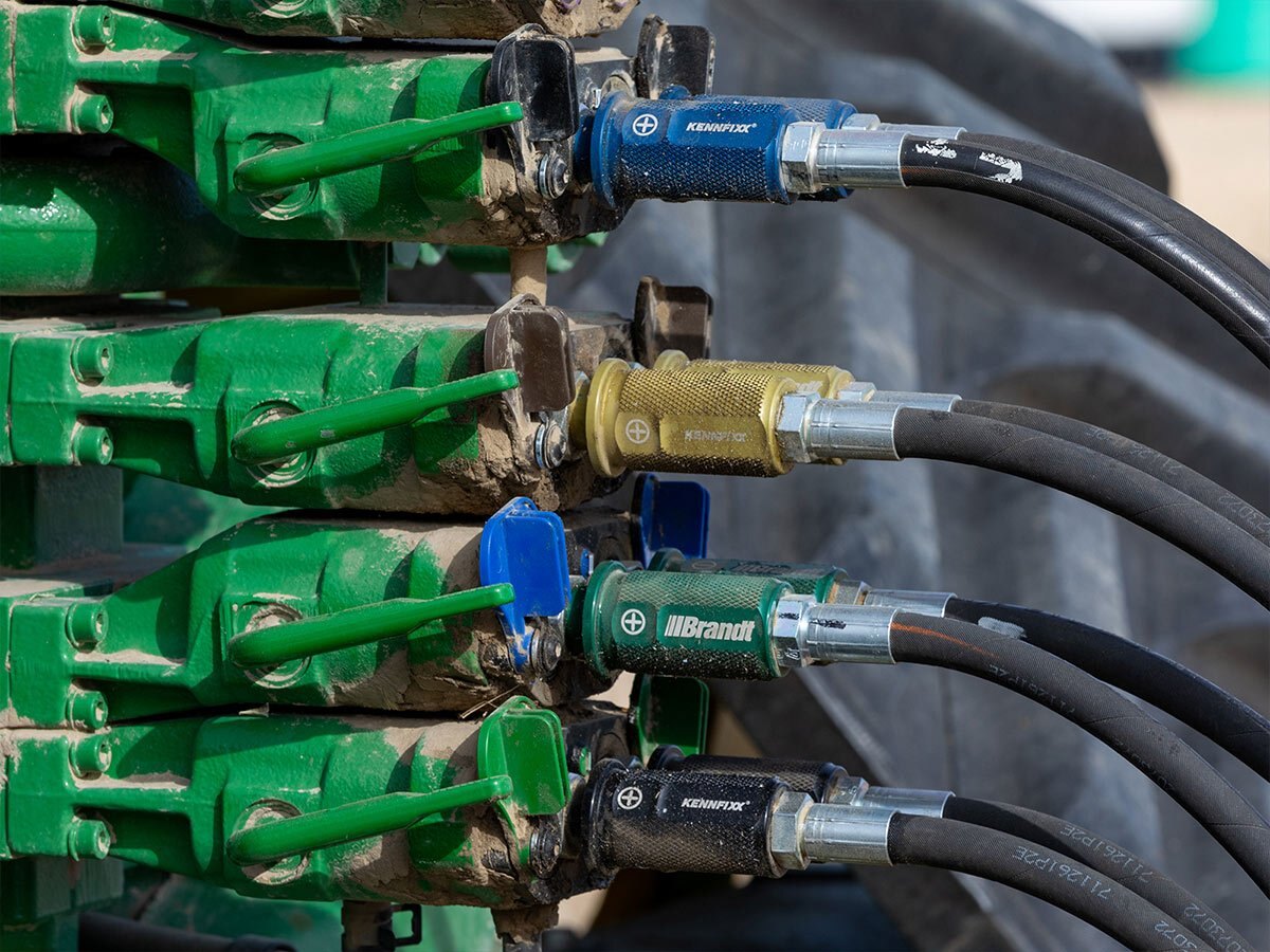 Effortless Hook-Up Premium couplers with custom colour coding fit securely into the coupler storage arm, keeping the hydraulics in great condition while making implement hook-up quick and easy.