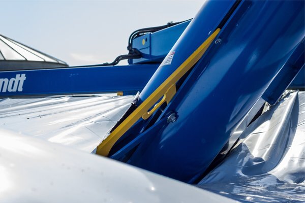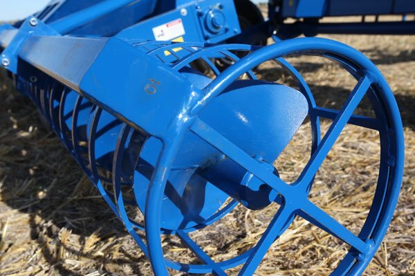 The hydraulically driven 16’ bag roller features protruding points every 17 1/4" to securely grip the bag for easy unloading. |