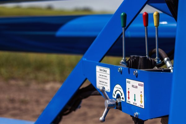 Operator controls are mounted at ground level for maximum control while unloading and have a four function hydraulic valve to control all grain bag unloading functions. A uniquely designed, self-storing knife can be set up or stored in seconds without the use of tools. The spring loaded clutch can also be disengaged without the use of tools for easy removal of the bag. |